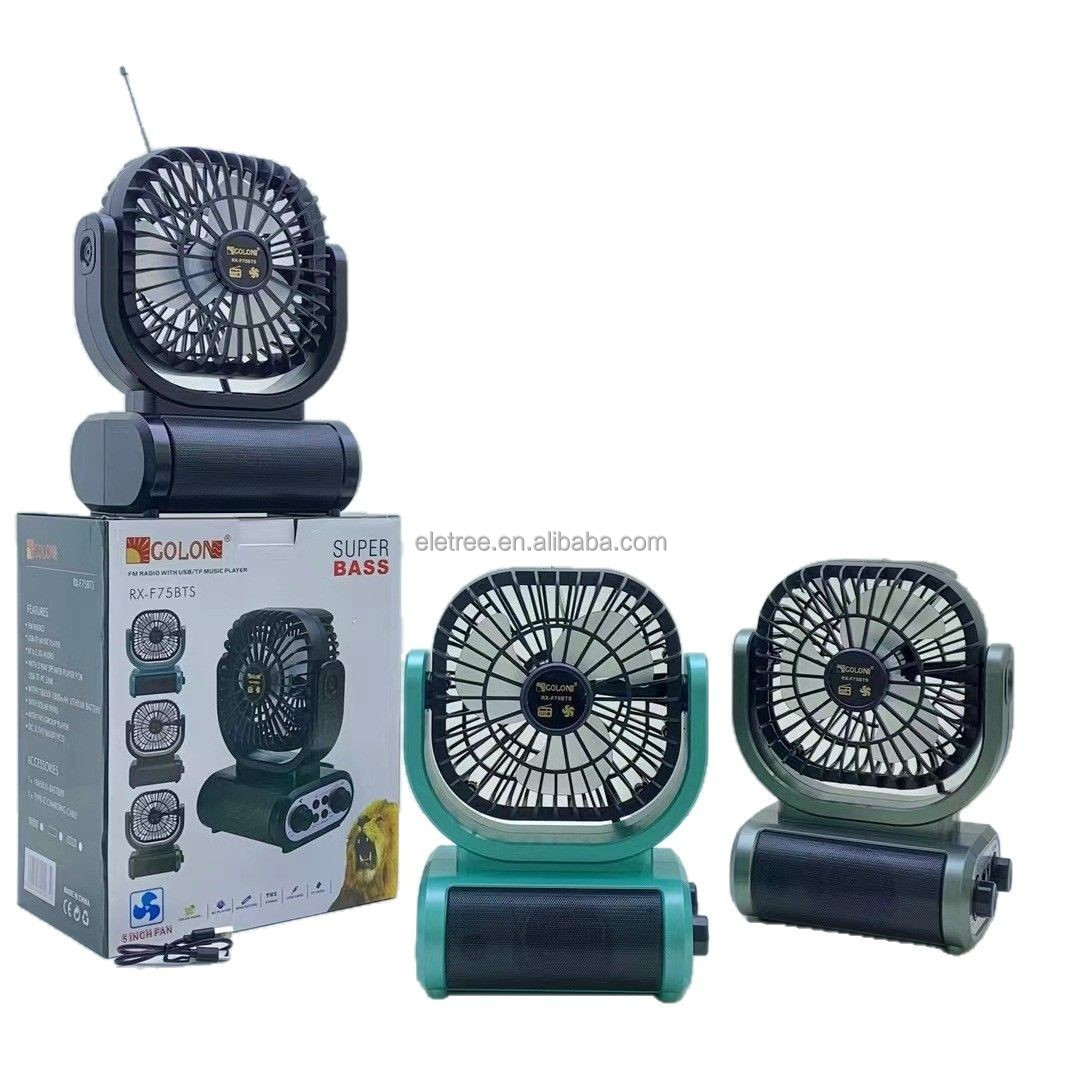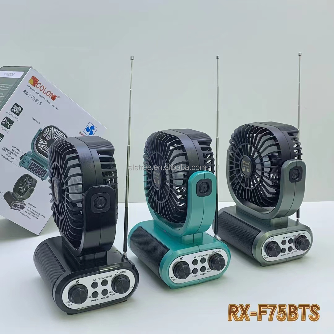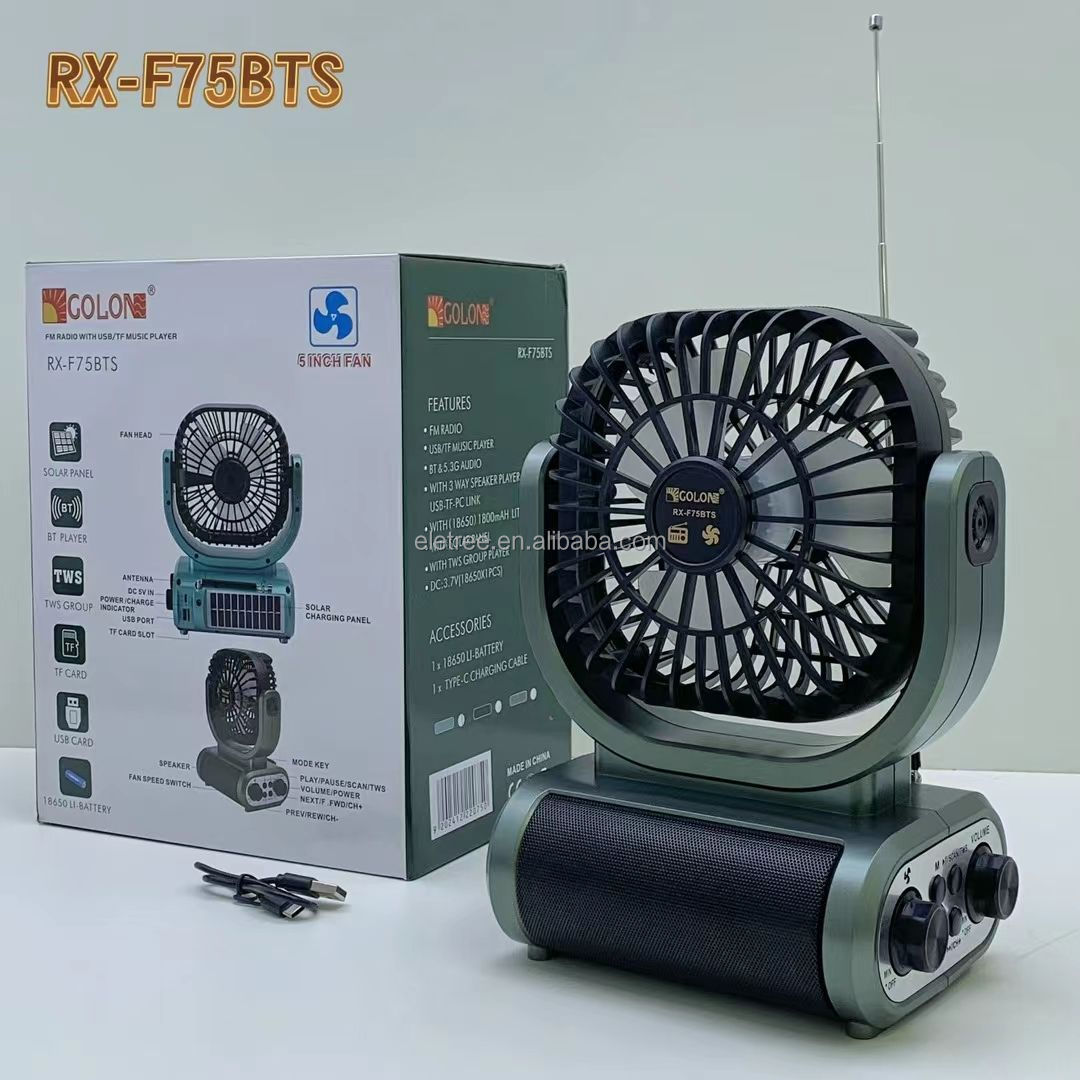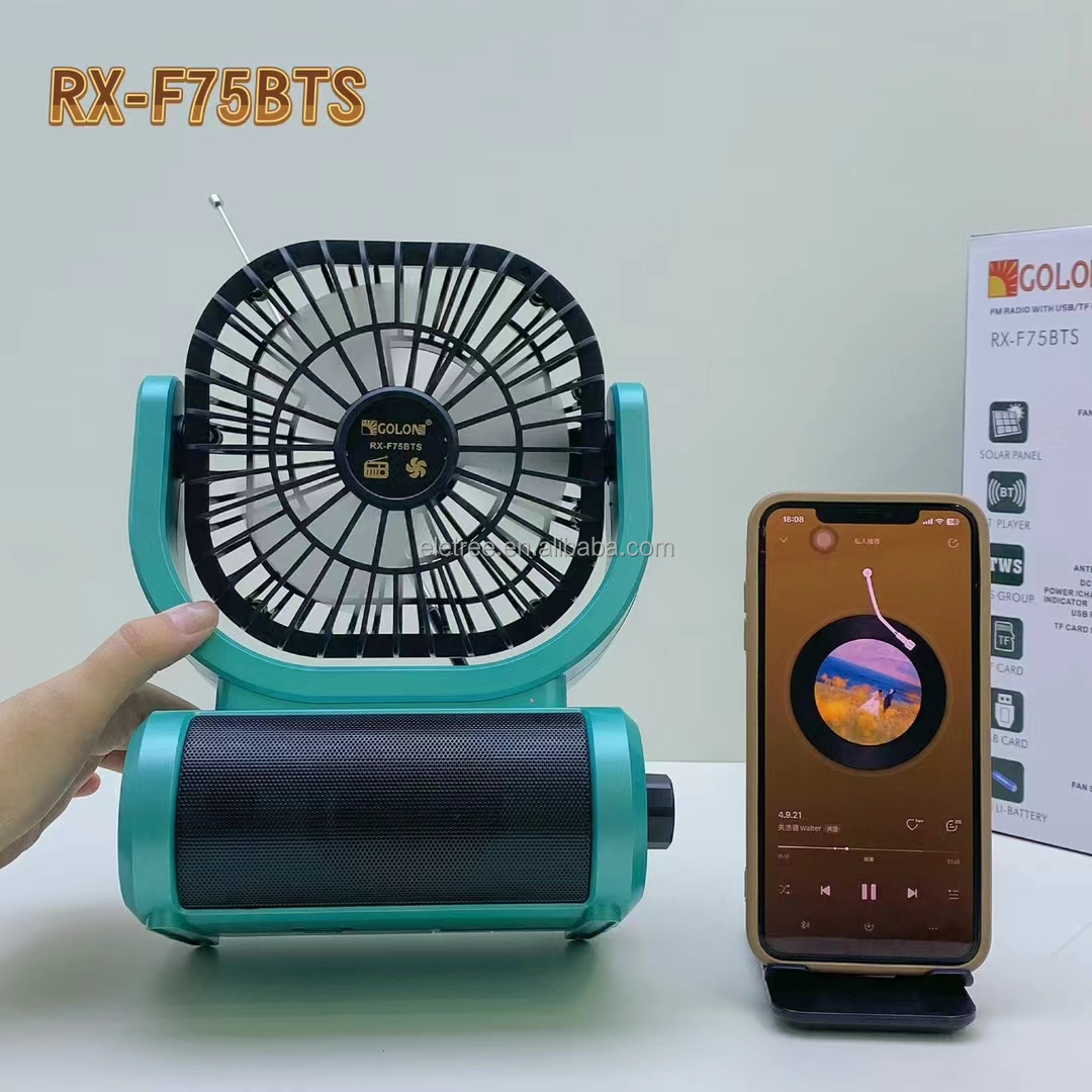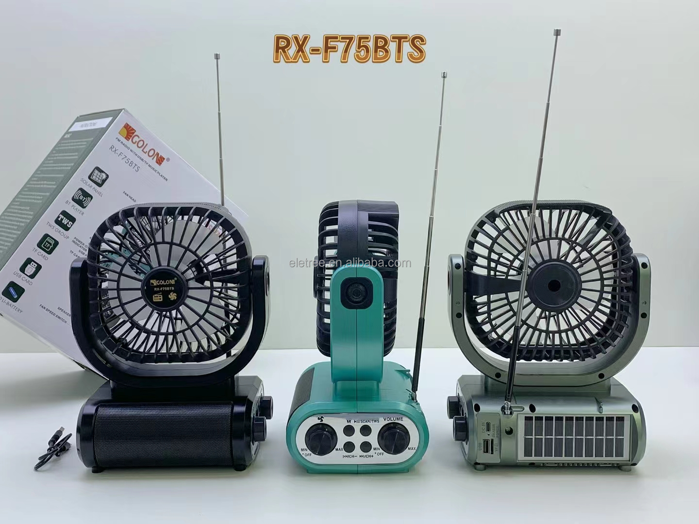 2025 New Arrival RX-F75BTS Portable Wireless Super Bass Speaker Solar Charging Radio with Cordless Jobsite Fan