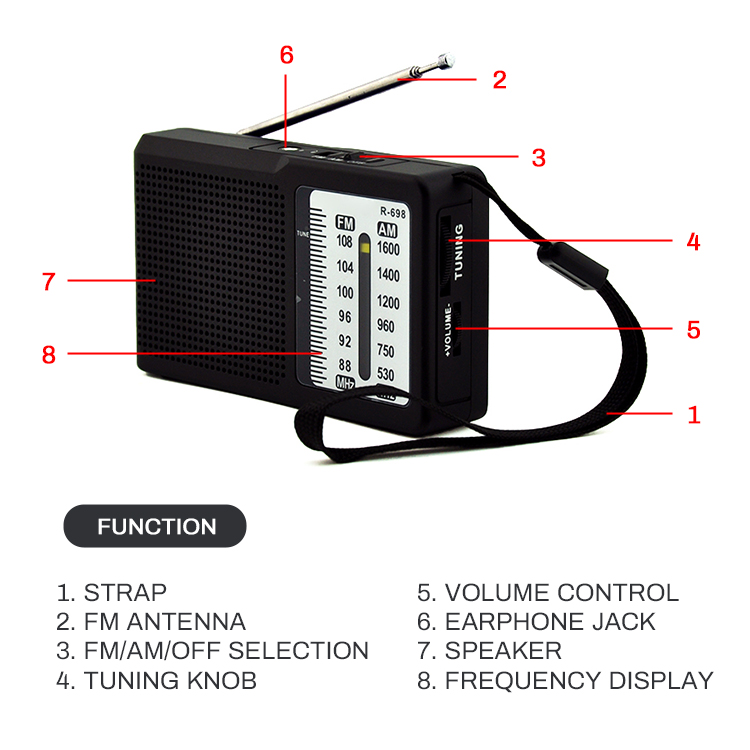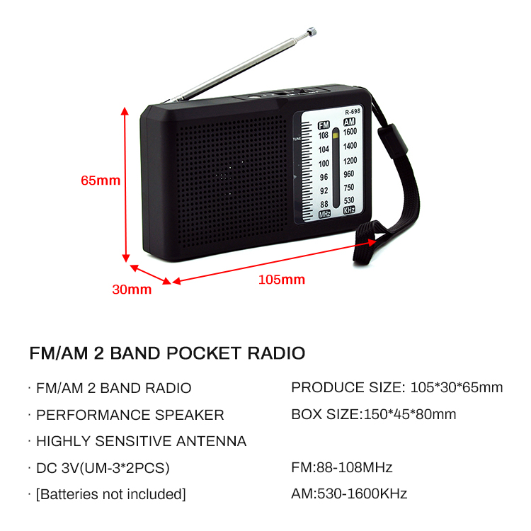Eletree Best Reception Handheld Muni Compact Transistor Am/Fm Pocket Radio With Usb Charging Cord