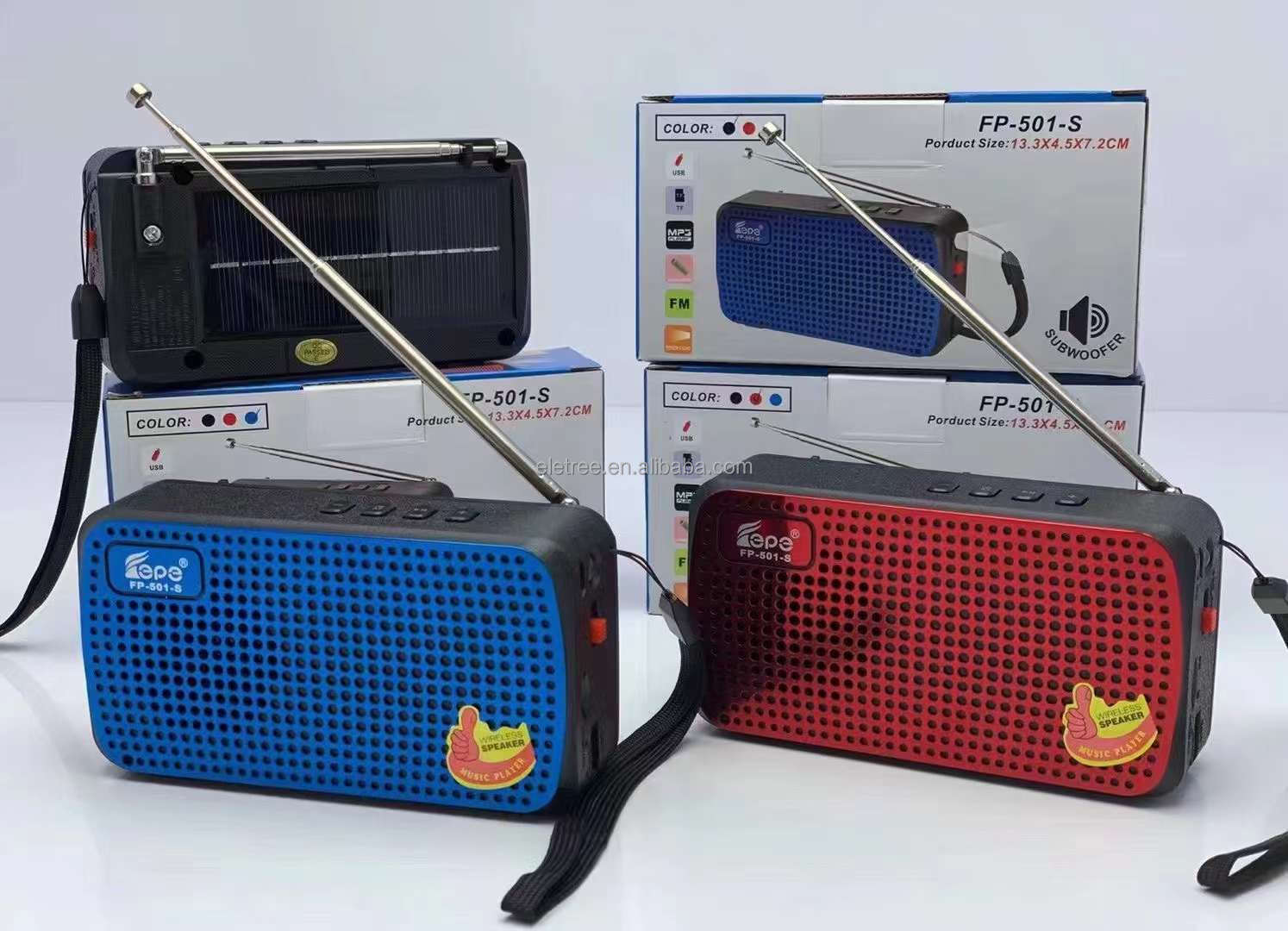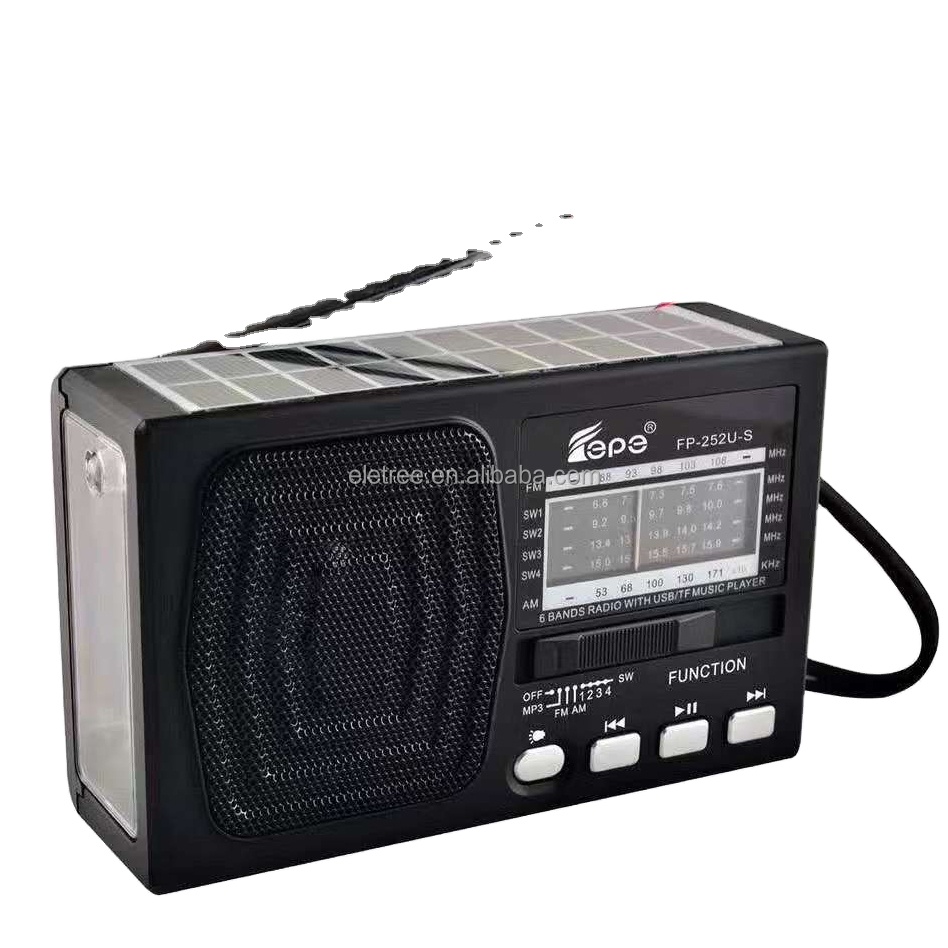 Eletree FP-801-S Portable Xbass Speaker Rechargeable Wireless Solar 4 Bands AM SW Fm Radio With Usb/Tf Slots
