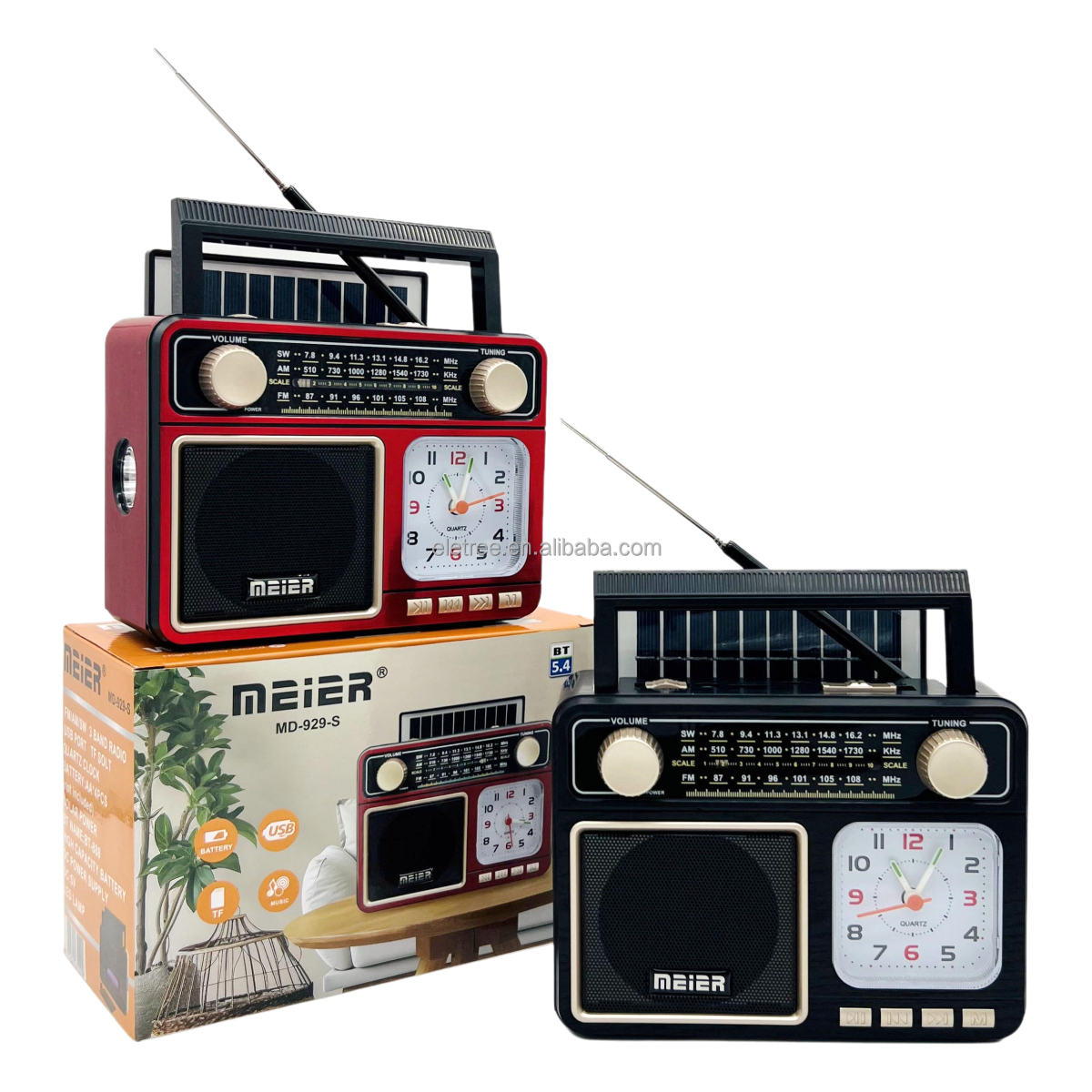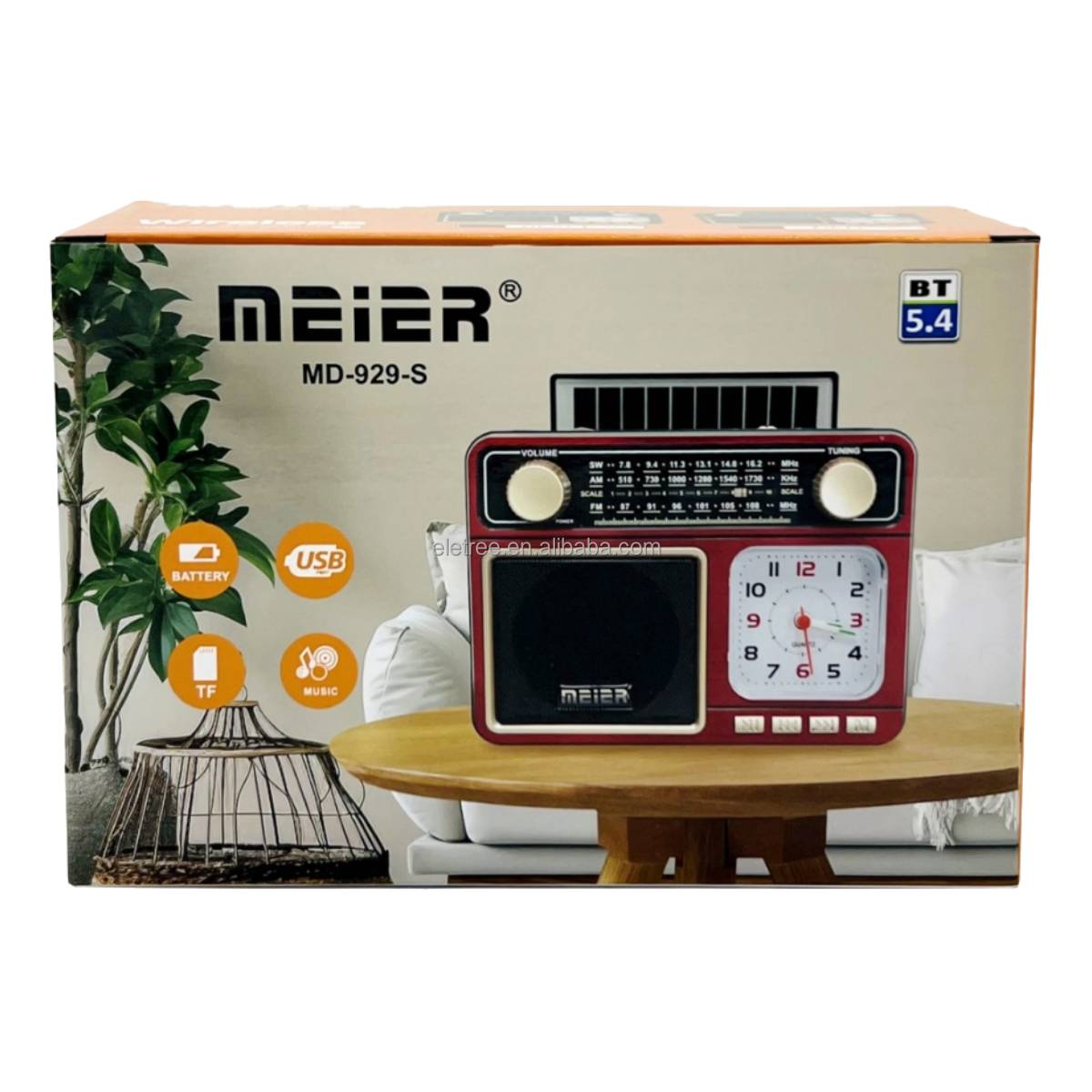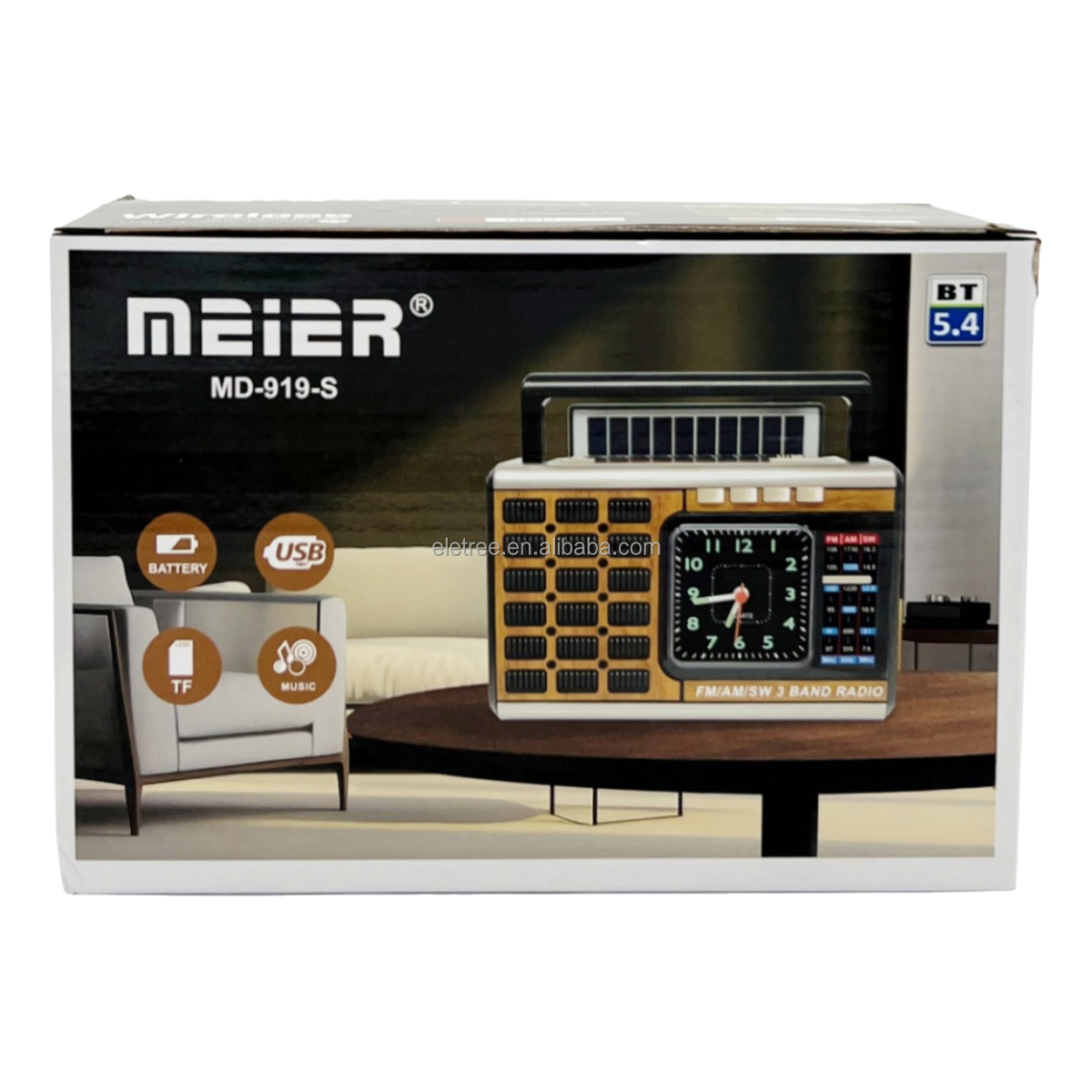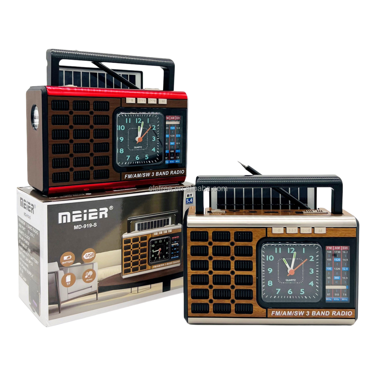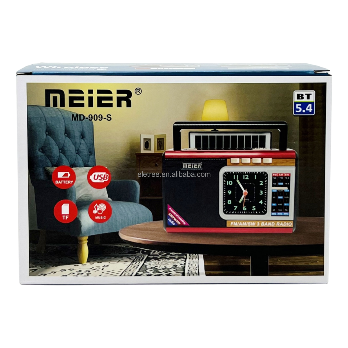 ELETREE Meier MD-909-S Portable Solar LED Lamp USB TF AM FM SW 3 Bands BT Radio With Quartz Clock