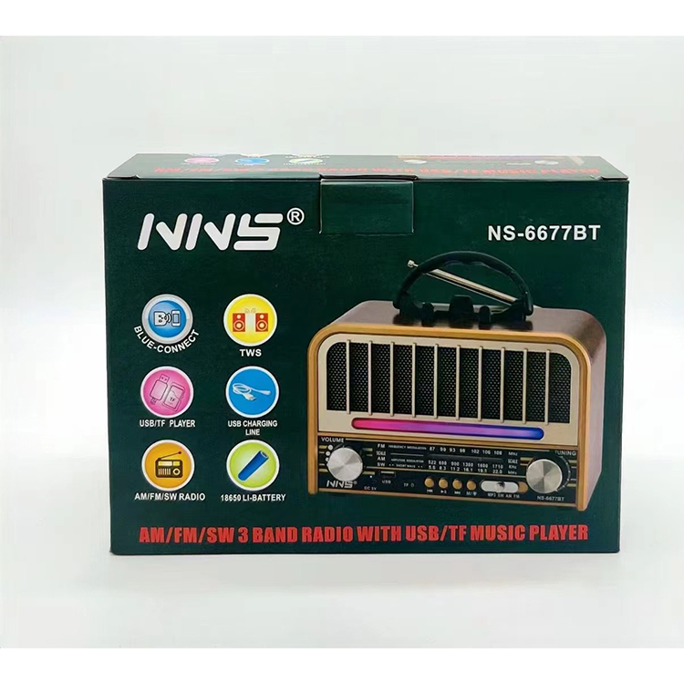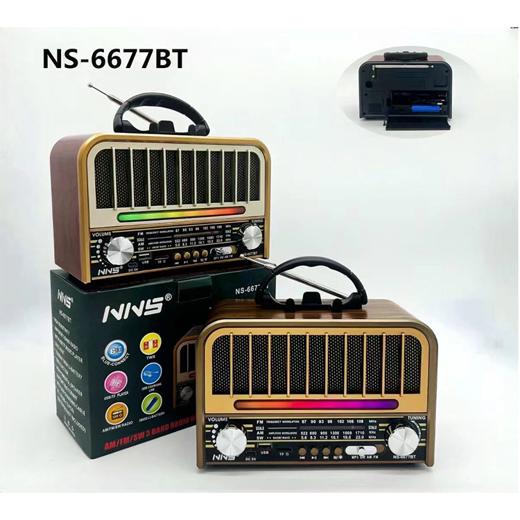 Eletree Ns-6677Bt Handmade Wooden Exterior Classic Vintage Retro Style Portable Am/Fm Radio With Led Disco Light