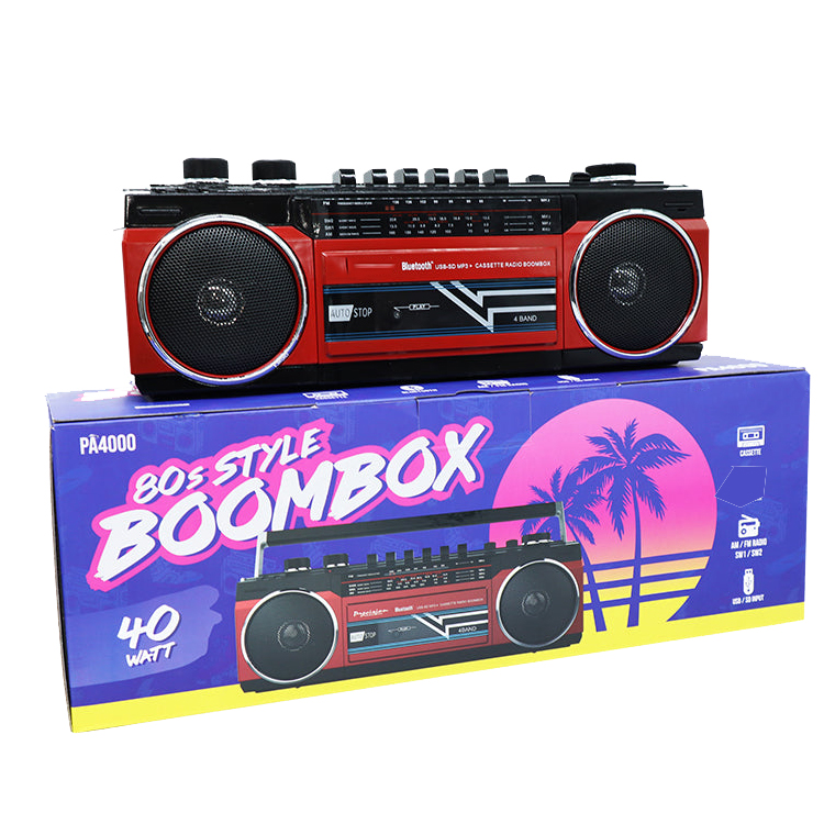 Eletree Pa4000 Retro Gift 80S Boombox Cassette Tape Player Wireless Speaker With 4 Band Radio and Speaker for Usb