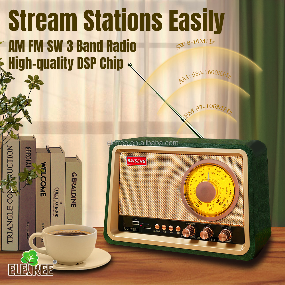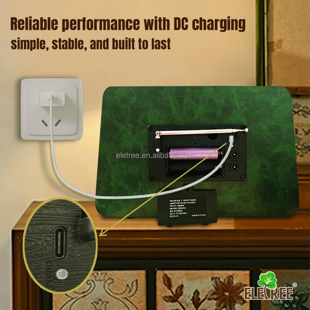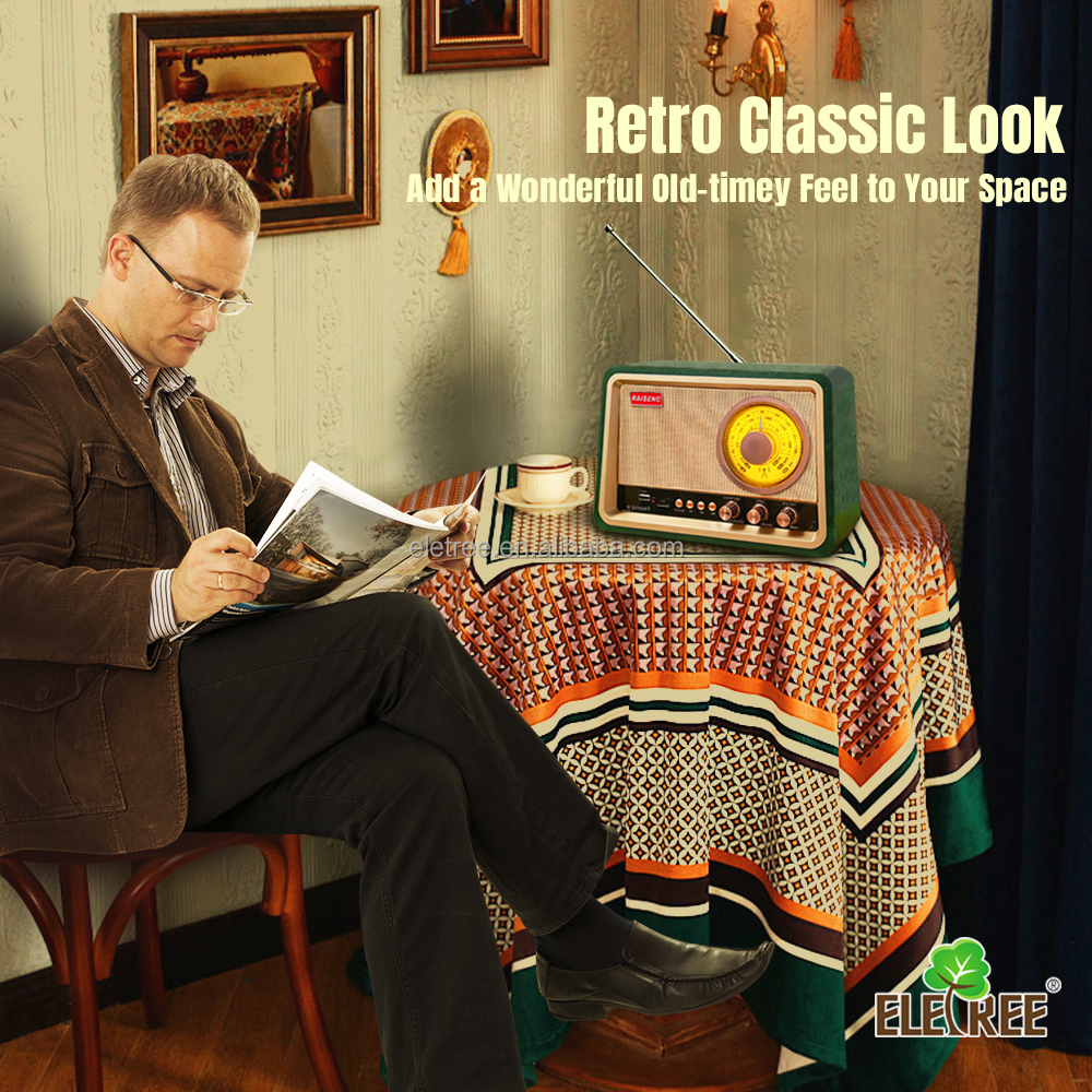 ELETREE Portable Retro Rotary Tuning Dial Wireless Streaming Stereo AM FM SW Radio with U Disk/TF Card/Aux Music Player