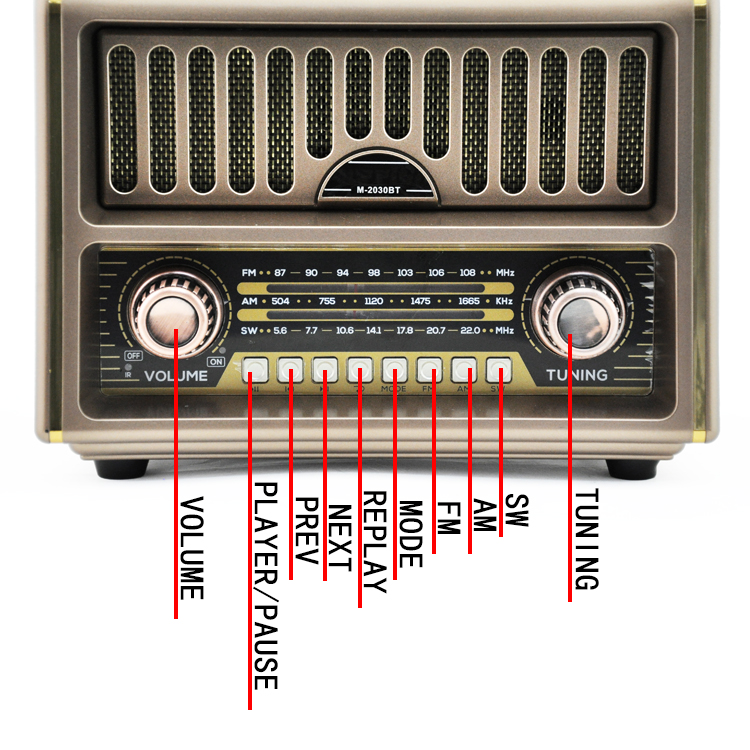 M-2030BT Meier Retro Style Entic Am Fm Sw Radio Bt Speaker With Bass and Treble Control