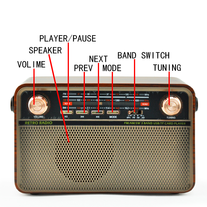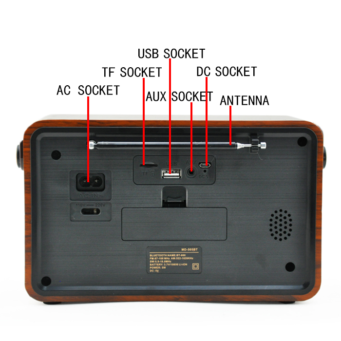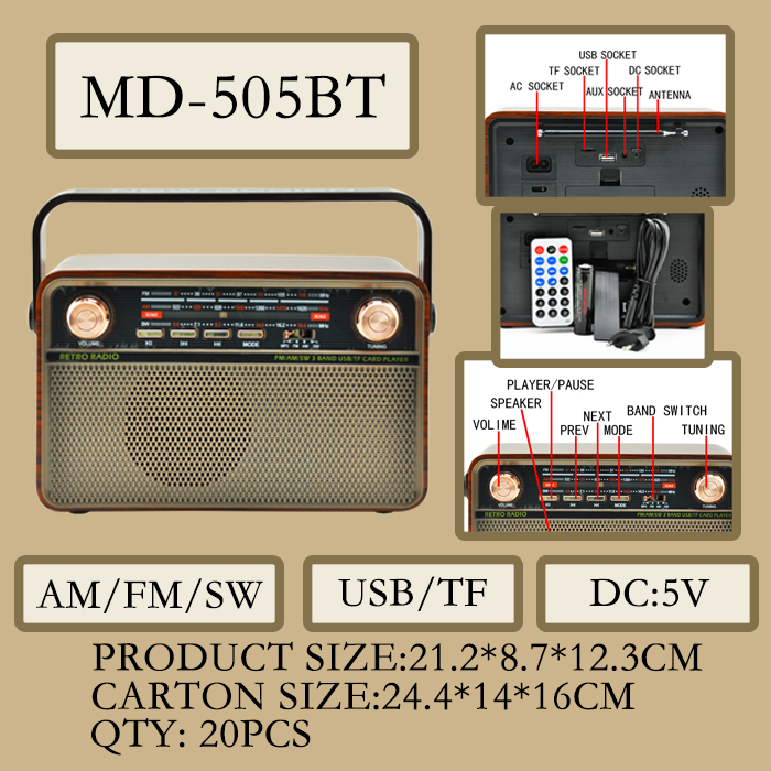 MD-505BT Eletree Big Size Portable Retro Vintage Homemade Antenna Home Use Antennaz Hi Fi Stereo Sound Am Fm Sw Radio