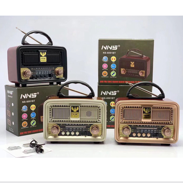 Nns Vintage Radio 8190 Bt Ns-8091Bt Ns-8091S Large Display Am Fm Sw Solar Radio With External Panel