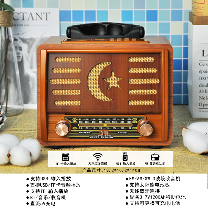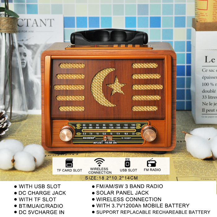 R-1938BT Portable Retro Anti Wood Ac/Dc Classic Classical Design Am Fm Am&Fm Home Radio With Music Speaker