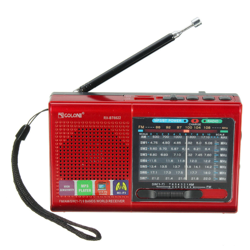 Rx-6622 Golon Rx-6622Bt Portable Small Gold Am Fm Sw1-7 9 Bands World Receiver Mp3 Player Usb Radio for Camping and Outdoor