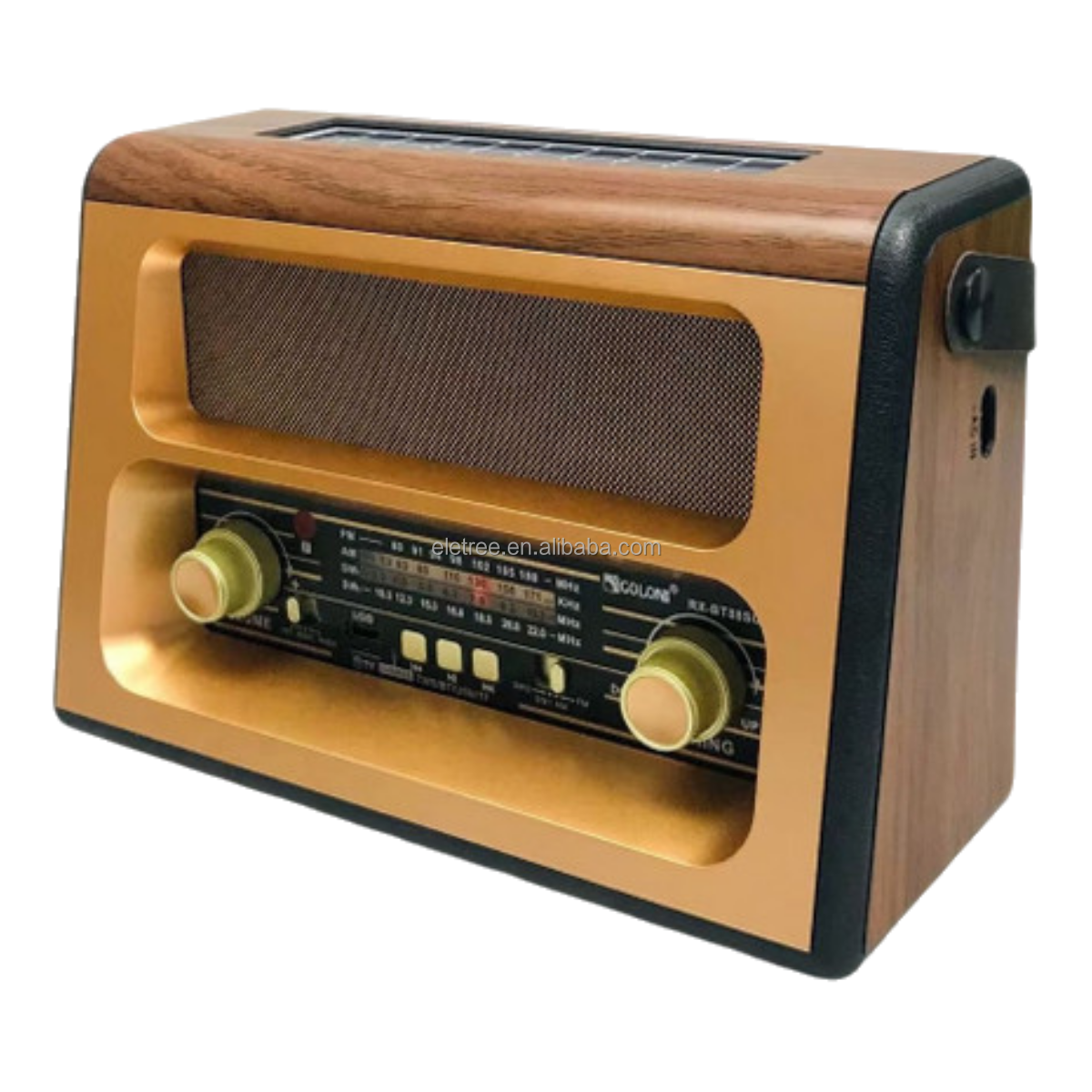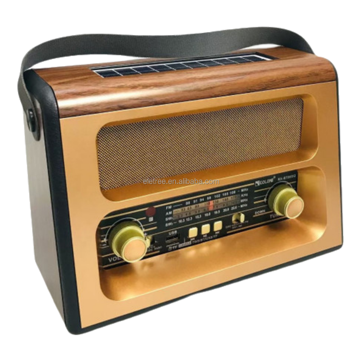 RX-BT88SQ Retro Hand Hold Built-In Wireless Speaker Wooden Sensitive Solar Charging Usb Am Fm Sw1 Sw2 4 Bands Radio